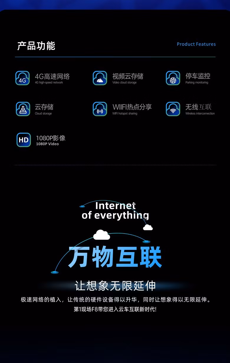 商品名称:第一现场F8云行车记录仪手机APP远程直播电子狗语音声控前后双镜头高清 黑色+64G内存卡