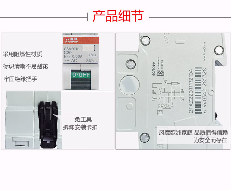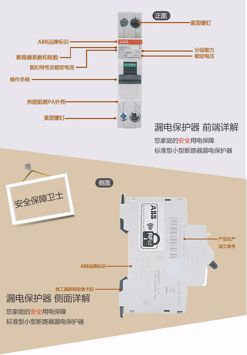 商品名称:ABB进口断路器 1P+N 20A紧凑型漏电保护器 双进双出 GSN201L-C20 单位:个