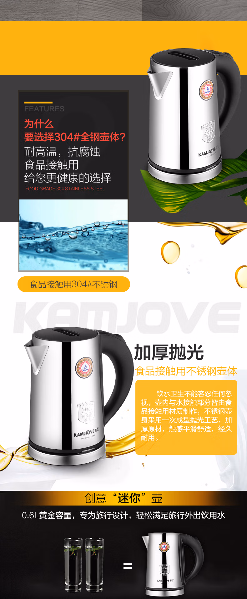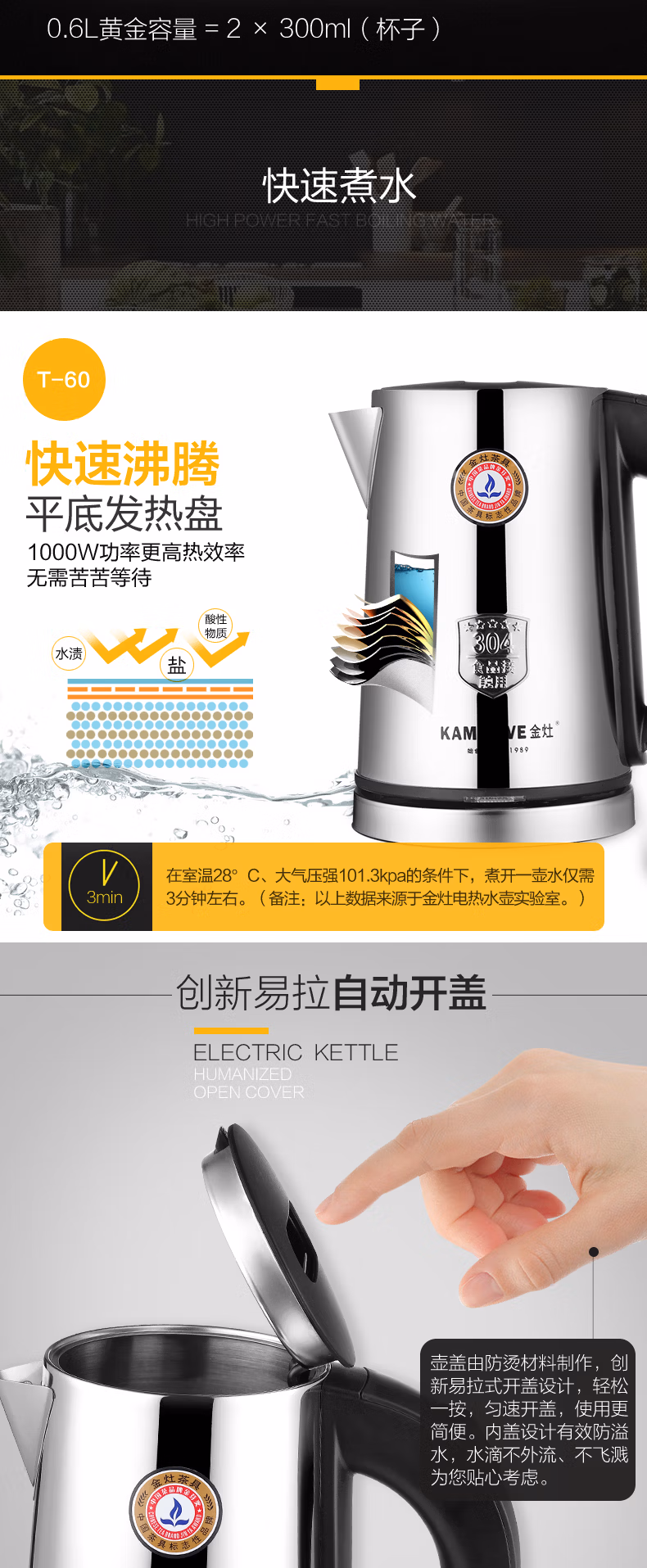 商品名称:金灶(KAMJOVE) 便携式电水壶烧水壶电热水壶家用小容量0.6L旅行水壶宿舍适用小功率开水壶 T-60 单位:个