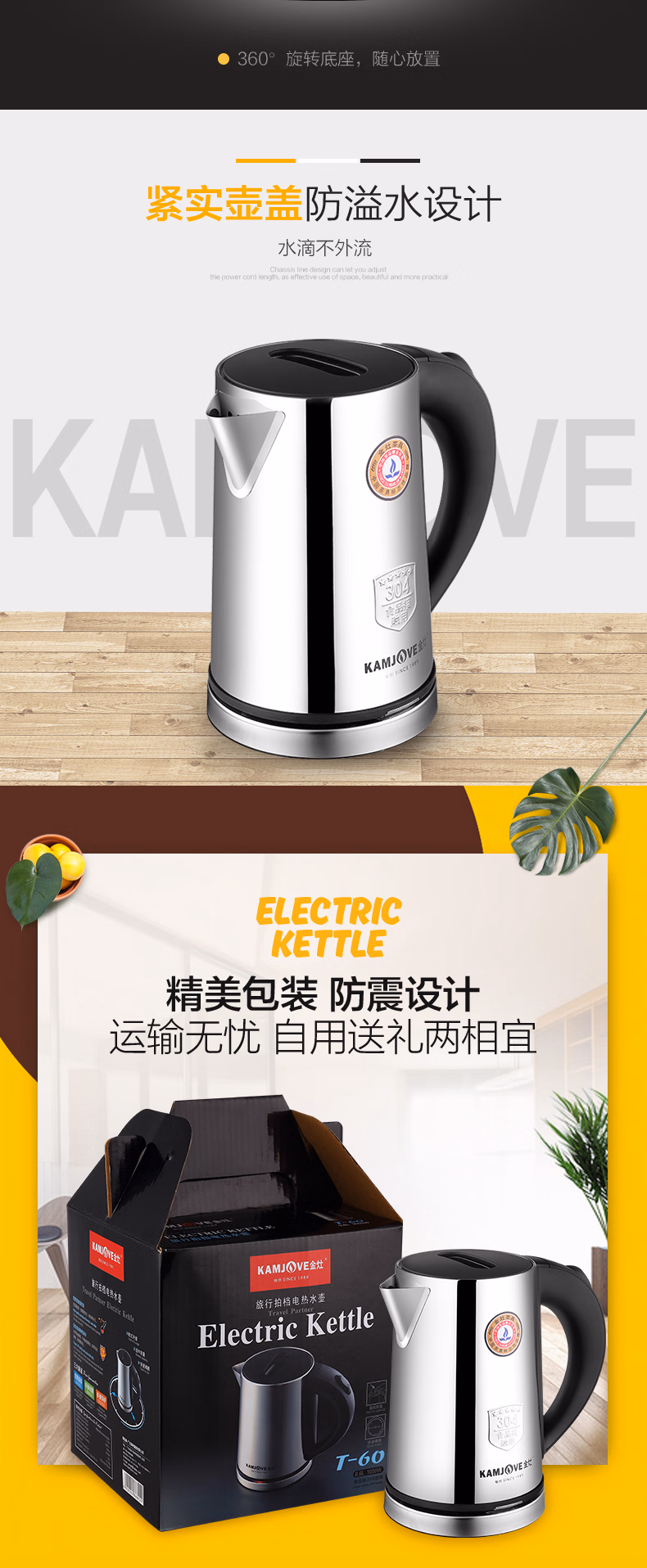 金灶(KAMJOVE) 便携式电水壶烧水壶电热水壶家用小容量0.6L旅行水壶宿舍适用小功率开水壶 T-60 单位:个