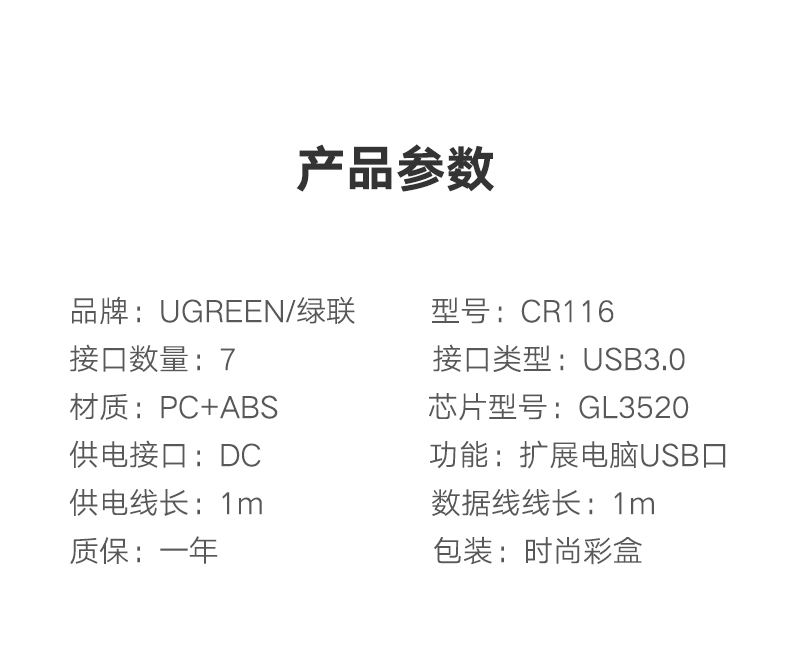 商品名称:绿联 usb分线器一拖四hub带电源集线器一拖七电脑多接口usb3.0转接头多功能扩展器笔记本拓展外接usb扩展口