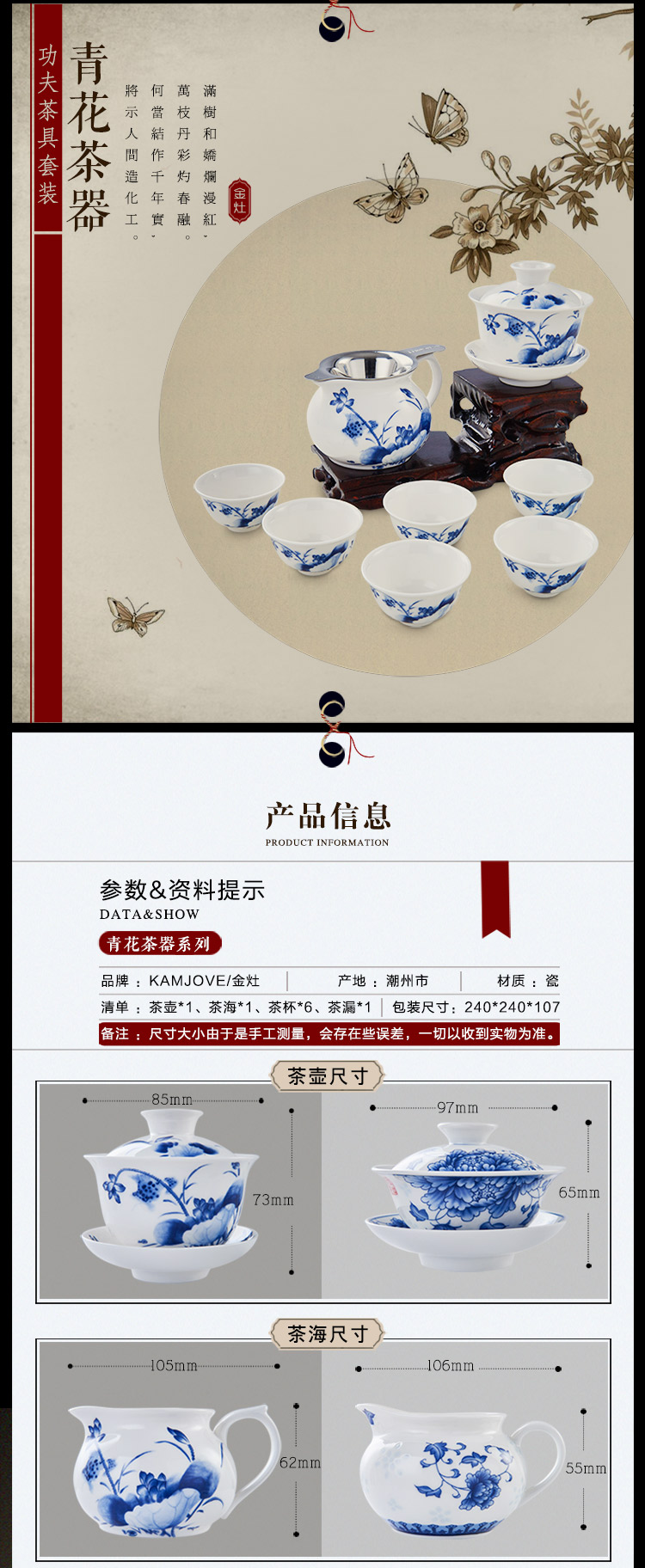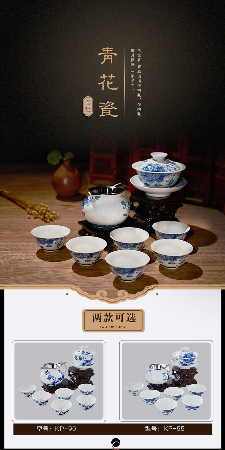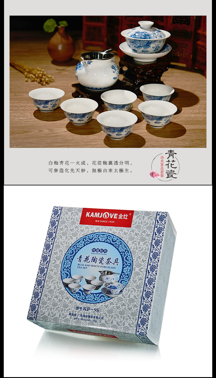 商品名称:金灶(KAMJOVE ) KP-95 青花瓷功夫茶具套装 品茗杯茶杯茶壶陶瓷茶具套装 单位:套