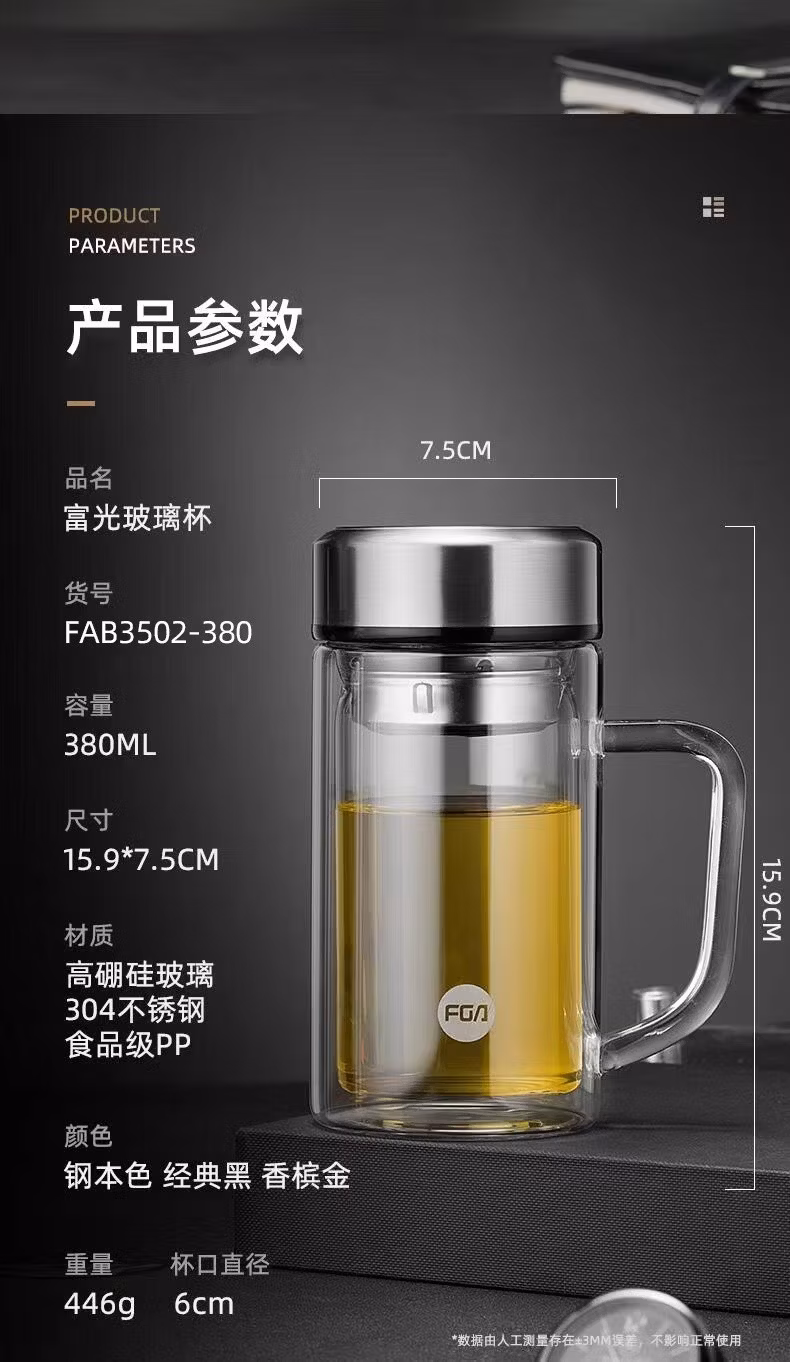 商品名称:富光-X1804-SP-380B-双层手柄玻璃杯-380毫升