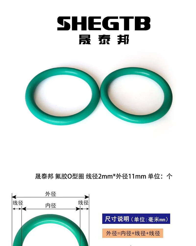 商品名称:晟泰邦 氟胶O型圈 线径2mm*外径11mm 单位:个