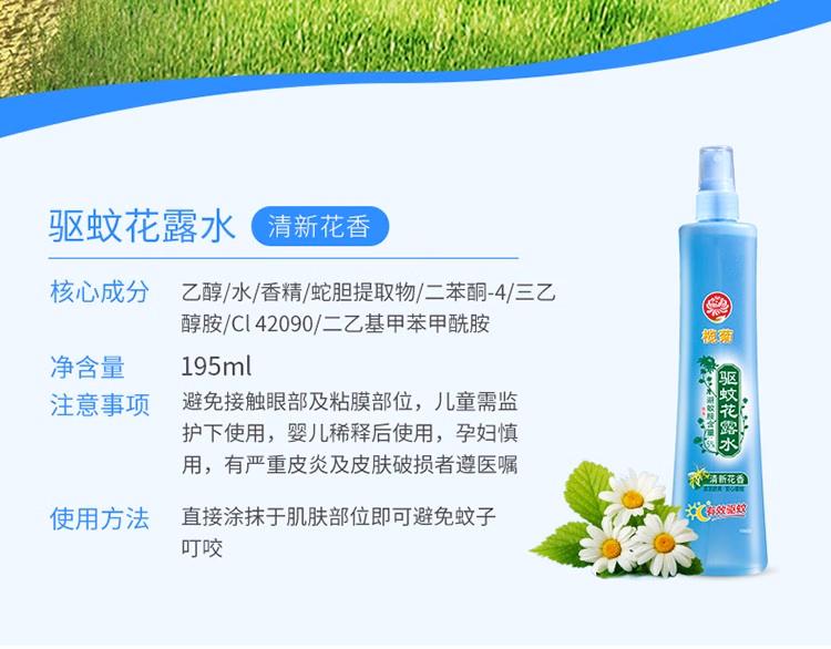 商品名称:榄菊 195ML*4瓶装清新花香喷雾驱蚊花露水 单位:瓶