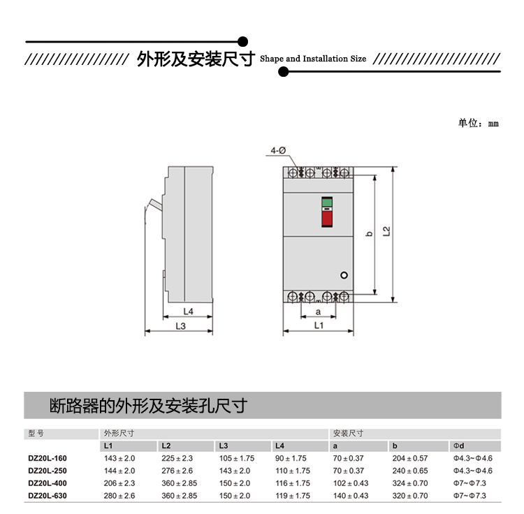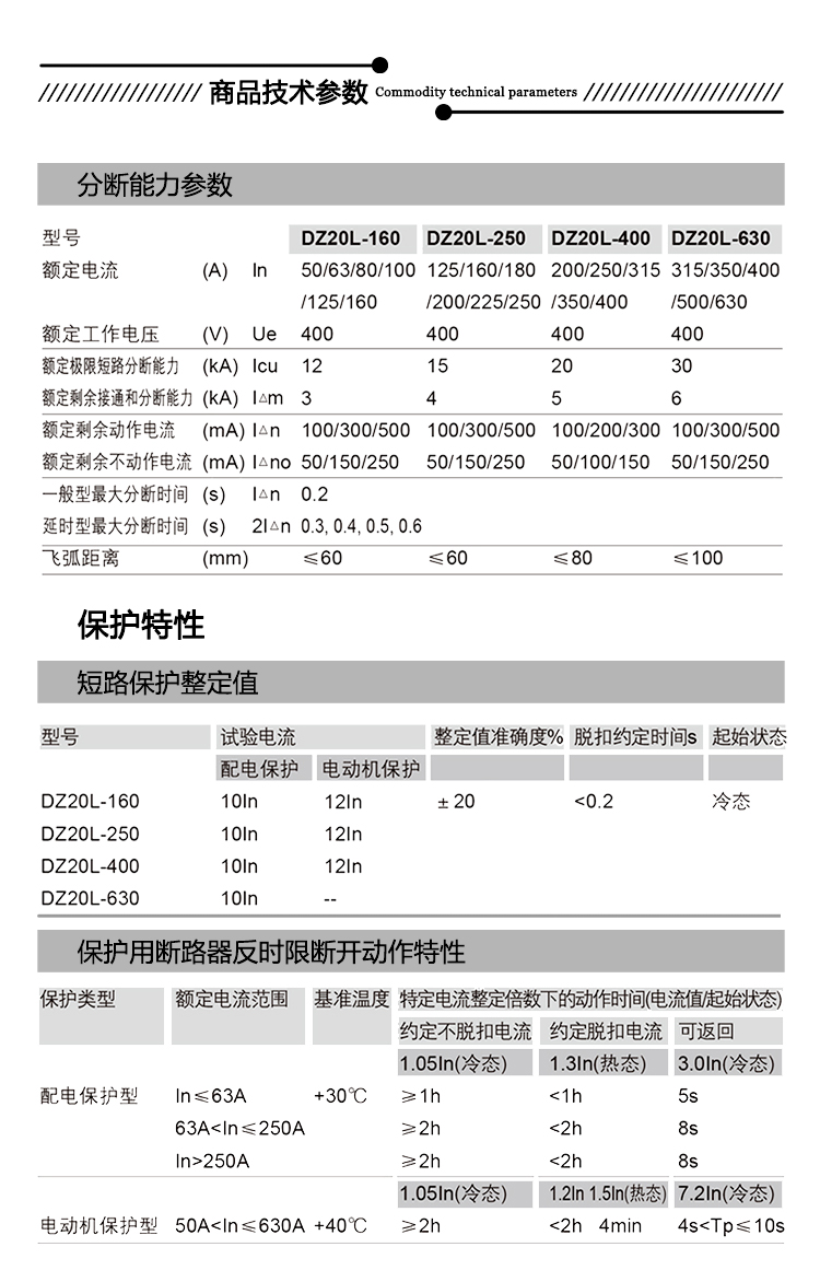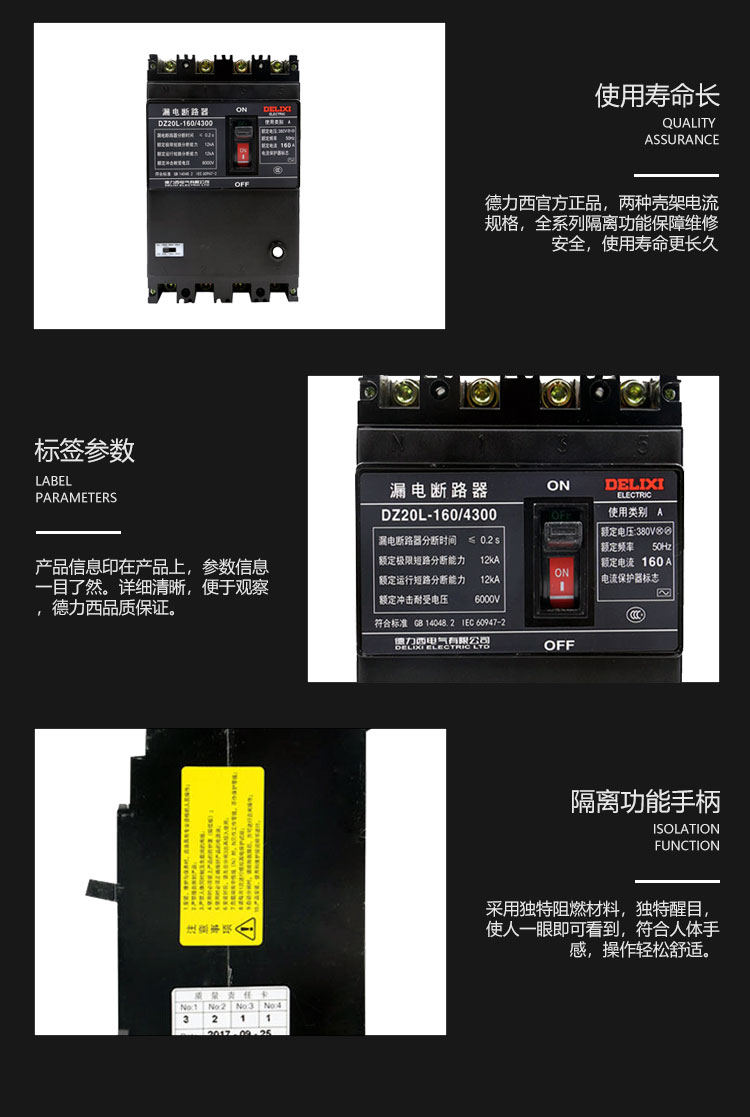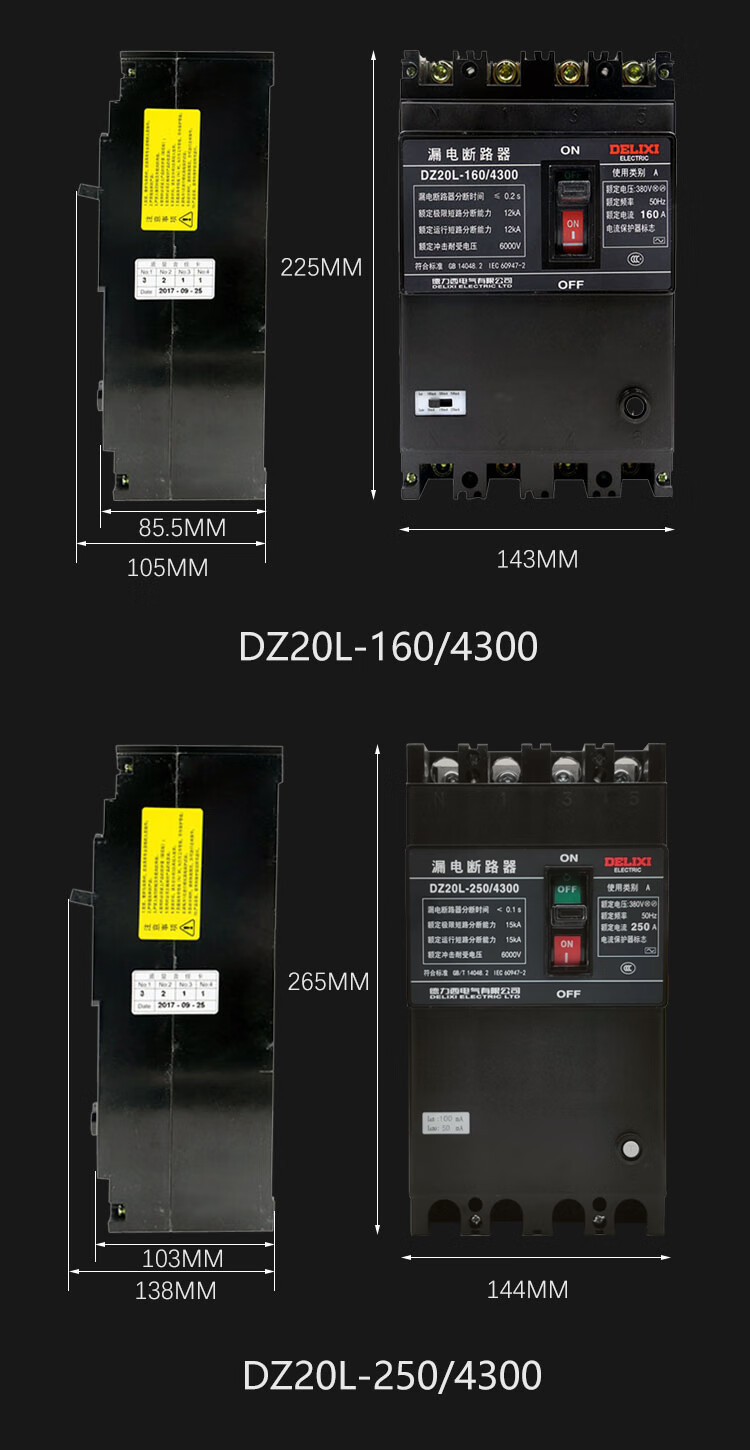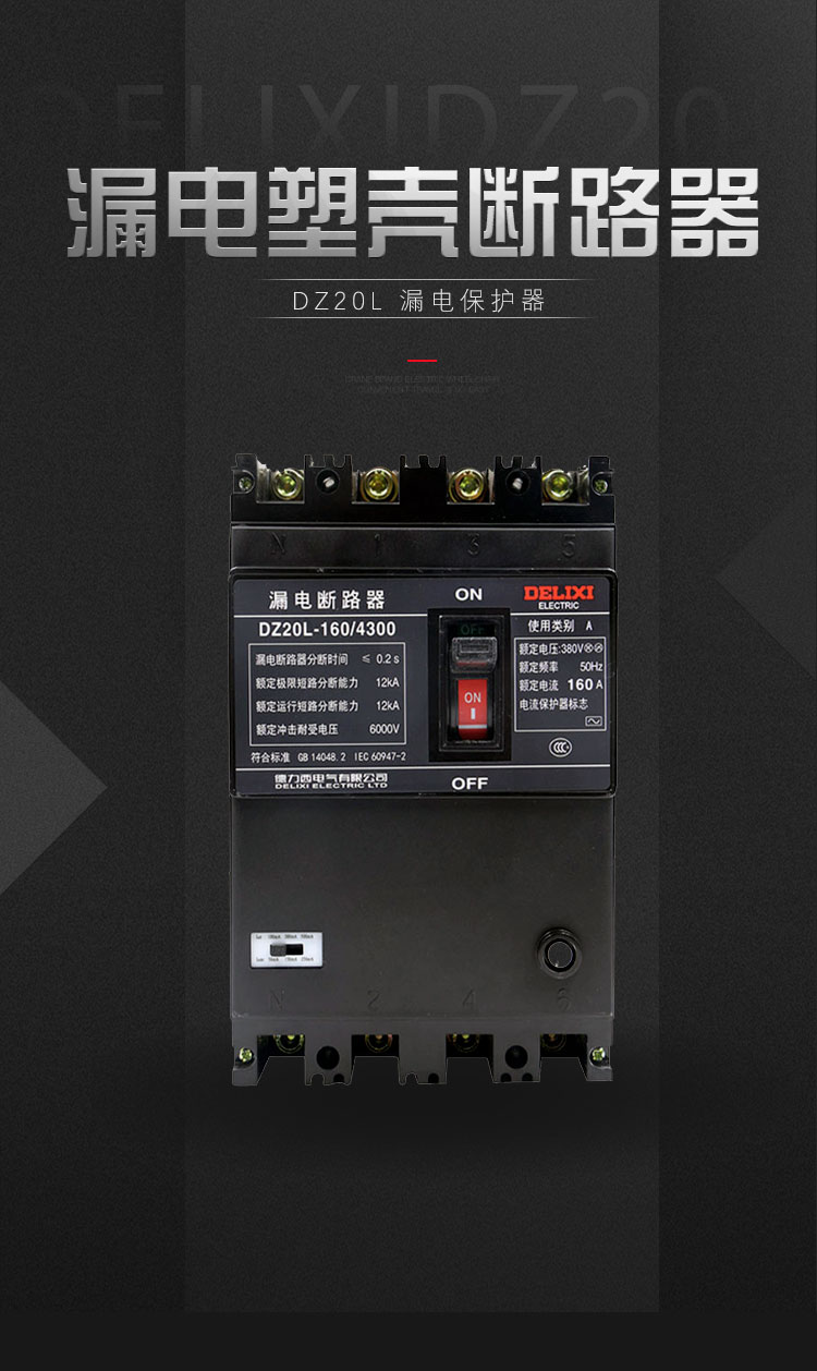 商品名称:德力西塑壳漏电断路器 DZ20L-250A160A630A三相电闸工业用保护器 4p 100A 单位:个