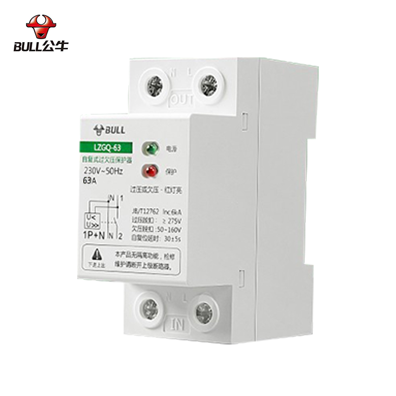 商品名称:公牛(BULL)断路器 家用空开/自复式过欠压保护器/电闸开关 过欠压保护 【1P+N 63A】自复式过欠压保护器 单位:个