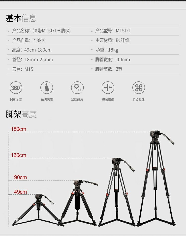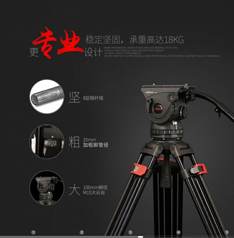 商品名称:miliboo/米泊 碳纤维100碗电影级三脚架10档动态平衡含云台 M15DT