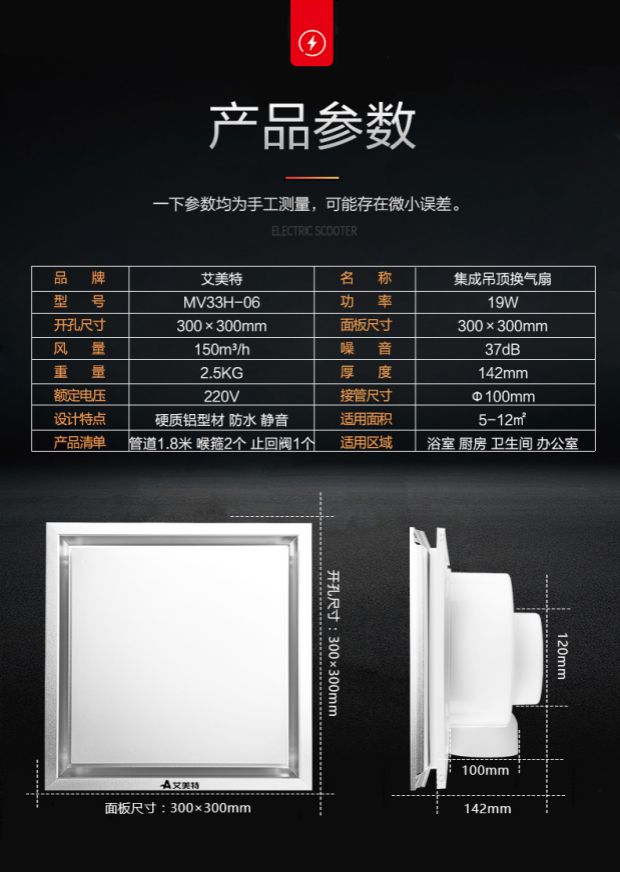 艾美特 集成吊顶换气扇静音排气扇 MV33H-06