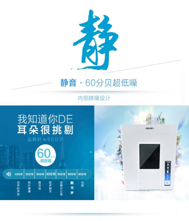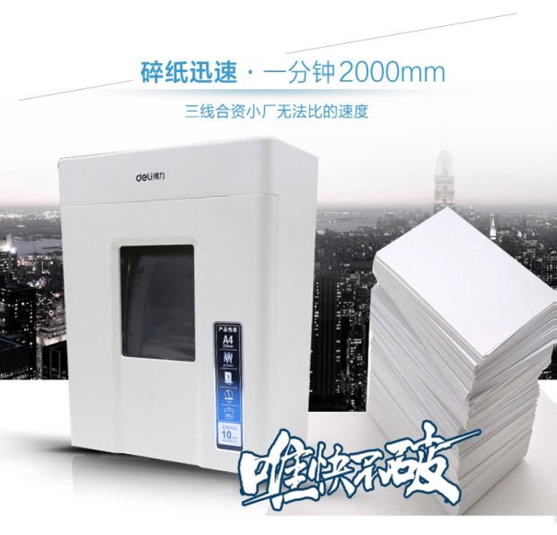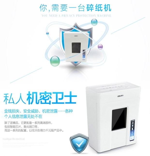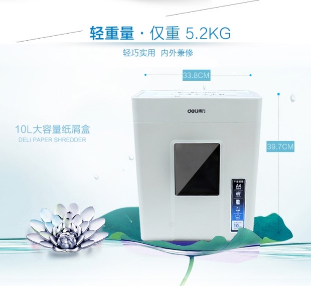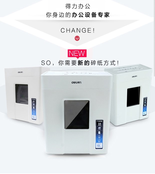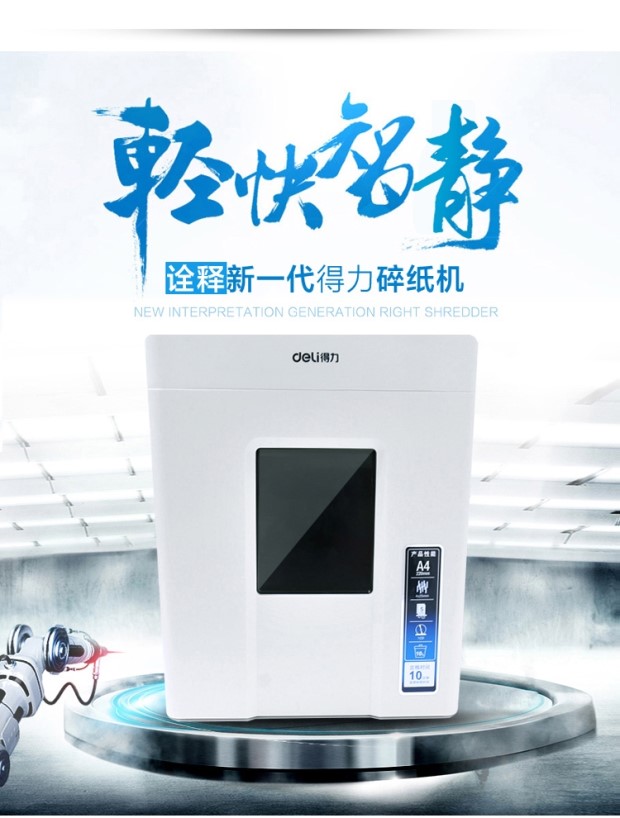 产品展示ProductInformation得力新款静音碎纸机,全新颜色设计,外形高贵典雅,是您办公生活的首选