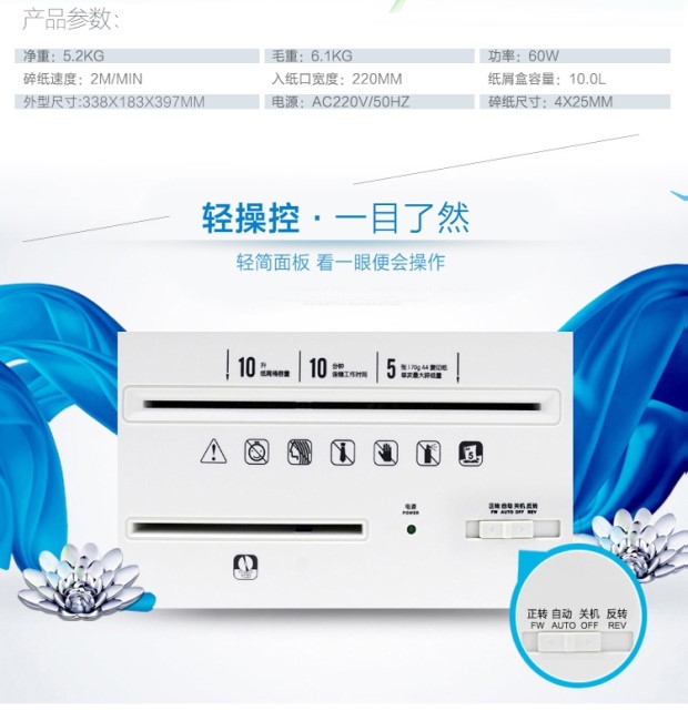 低耗能,时尚小巧,超静音,保密、环保、优质、时尚产品特色SellingPoint四大特点成就超性价比碎纸机