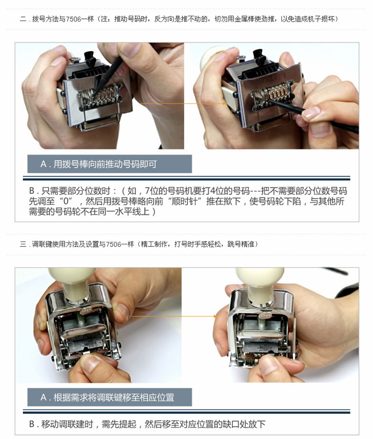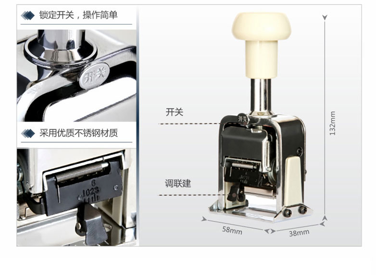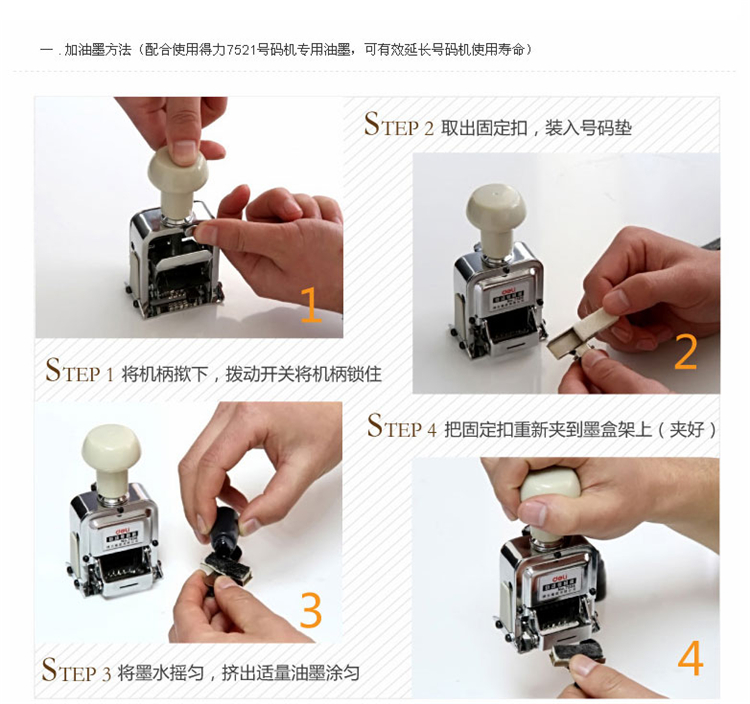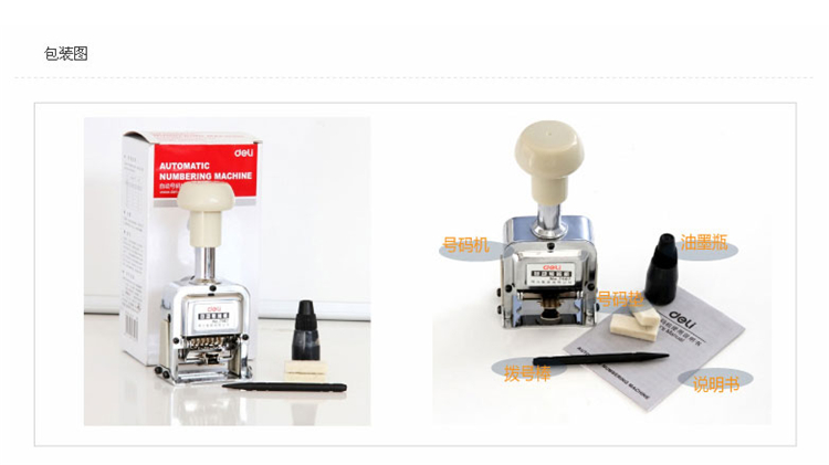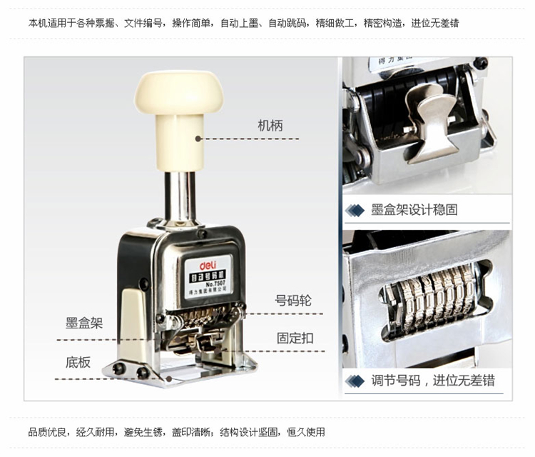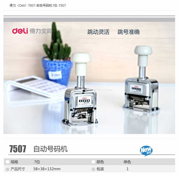 商品名称:得力 7507 7位自动跳号 财务号码机打号 编号手动页码打码器